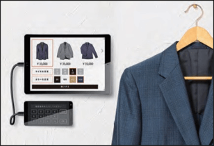 RFIDタグにより、試着室に持ち込んだ商品が試着室内のタブレットPOSに登録、表示されます。販売スタッフの呼び出し機能の付加や、決済端末との連携、試着室に持ち込まれながらも購買されなかった商品(カゴ落ち商品)を非購買データとしてタブレットPOS経由で収集する仕組みを構築。データは会員情報に登録され以降の販促などに活用することが可能。このシステムにより、お客様の店舗での購入情報取得、レジに並ぶ時間を削減する購買体験の提供、販売スタッフのレジ業務削減および接客の質向上を実現しました。