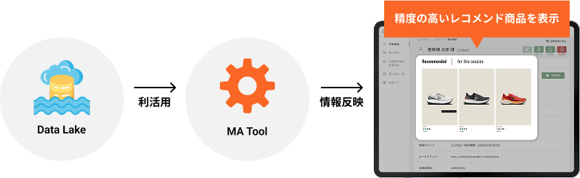 蓄積されたタグデータは、WebマーケティングやMAツールなどと連携し、最適なインセンティブ発行やレコメンドなどの施策に活用いただけます。